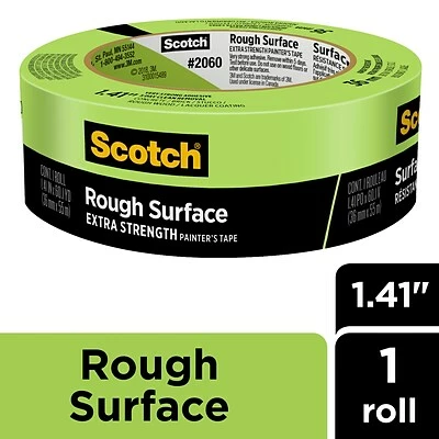 Scotch Rough Surface Painter’s Tape has a very strong adhesive designed for performance on rough, non damageable surfaces. Use on brick, concrete, stucco, or rough wood for the protection you need to get the job done. Scotch Rough Surface Painter’s Tape is recommended for use with or on lacquer coatings. This tape holds to surfaces for up to 5 days and then removes easily without leaving any sticky residue behind.