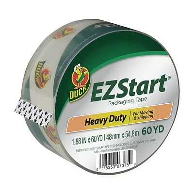 Skip the annoyance of moving and shipping tapes that split or tear. Duck® Brand EZ Start® Packing Tape is designed to be Frustration-Free® so it always unrolls smoothly, easily and quietly. Featuring a long-lasting adhesive, you can keep your boxes and packages secure during shipping, moving and storage. Plus, the tape starts easily off the roll, eliminating the frustration of losing the tape end so you can pack up and leave the stress behind. This crystal clear packing tape unwinds quietly, so it’s perfect to use in the office or at home.