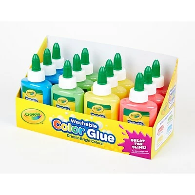 Great for school projects, creative craft projects in paper, cardboard or fabric and colorfully customizing slime creations. Crayola Color Glue is the washable, colorful glue that gives your crafting, school projects a vibrant decorative touch! Works on paper, cardboard or fabric. And it’s perfect for creating all colors of slime! Each 3-ounce bottle comes in one of 4 Crayola colors including Mango Tango, Banana Mania, Pacific Blue and Granny Smith Apple colors.