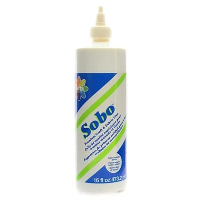 Sobo Glue is a superior, all-purpose, white glue that has good tack and is ideal for crafting with paper, some fabrics, and most other porous craft materials. The special non-yellowing formula dries clear and flexible. Will not bleed through or stain paper or craft fabrics. Use on porous and semi-porous surfaces like paper, wood, chenille, leather, yarn, and some non-washable fabrics like felt. Can also be used to make papier mache.