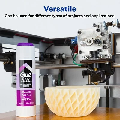 Outfit your classroom or office with this 6-pack of glue sticks. The purple color lets you see exactly where you are applying glue, and it disappears while drying for a clean appearance. Each stick features nontoxic, washable adhesive for safe, easy cleanup. These Avery Glue Stic purple glue sticks work with cardboard, paper, fabric and photos for added versatility.