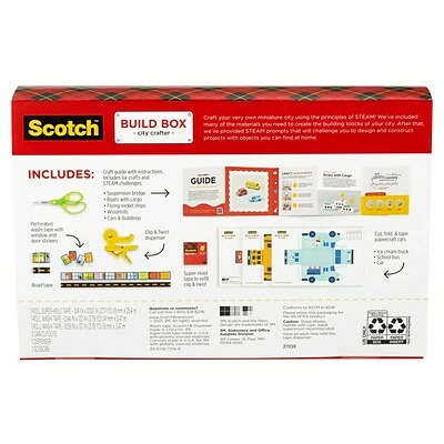 We’ve included many tools to create the building blocks of your city. After that, we’ve provided some STEM prompts that will challenge you to design and construct projects with objects you can find at home. Designed for kids age 8+. Share your creations with us using #ScotchSTEAM on social media.