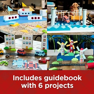 6 PROJECTS – Buildings, Papercraft Cars, Boats with Cargo, Suspension Bridge, Rocket Blast, and Windmills