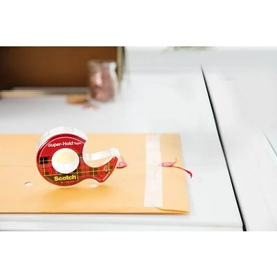 Designed to be extra durable with a thicker backing, this tape delivers a reliable, long-lasting hold ideal for tears, small packages, labeling and more. You’ll love its virtually clear look that practically disappears upon application–lending a professional finish to envelopes and important documents. Before your tape starts to run low in your Scotch® Tape Dispenser, make sure to stock up on Scotch® Super-Hold Tape Dispenser Refills for a superior bond on contact.