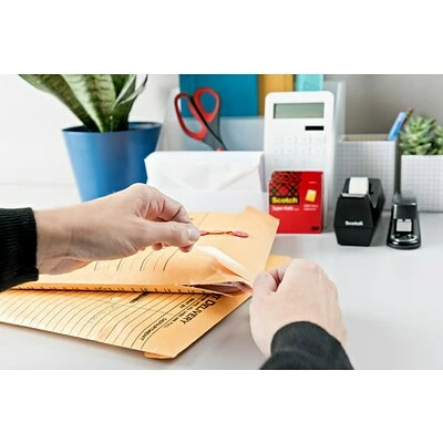 From sealing envelopes to making quick fixes on the fly, rely on the powerful bond of Scotch® Super Hold Tape. Designed with 50% more adhesive, this innovative tape offers a stronger bond than our standard transparent tape (Versus Scotch® Cat. 157 Transparent Tape). The thicker backing delivers outstanding durability when a secure, lasting hold is essential. Virtually crystal clear, this tape holds strong without standing out–perfect for repairs, mounting, crafts and more. The convenient dispenser fits comfortably in your hand and lets you unroll and cut your desired amount with ease. Whether you’re concealing confidential documents, sealing a small care package, trust what matters to you to the superior adhesion of Scotch® Super Hold Tape.