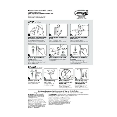 INCLUDES – 1 hook and 2 large indoor strips; 1 hook holds 5 lbs