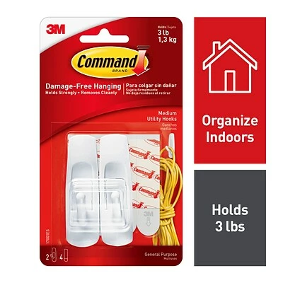 Command Hooks let you hang what you want, where you want, without the hassle of tools and nails. Command Strips hold strongly on a variety of smooth, finished surfaces, and these adhesive hooks remove cleanly with no sticky residue or damage left behind. Now you can organize your home or office just the way you want with Command Utility Hooks.