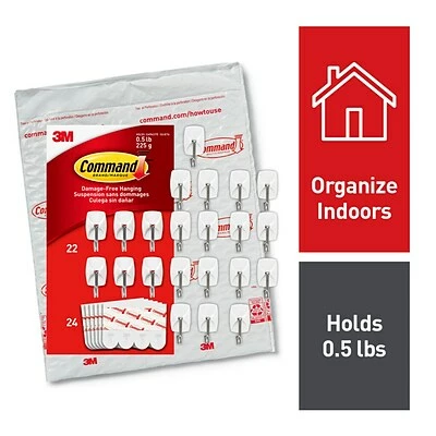 INCLUDES – 22 hooks and 24 small indoor strips; 1 hook holds 1/2 lb