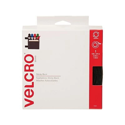 Reposition posters, placards, notices, and other signage easily by using these hook-and-loop fasteners. Featuring self-adhesive backings, these black fasteners are simple to apply without the need for additional tools. These Velcro 0.75-inch fasteners come on a 15-foot roll, which can be cut to fit a variety of indoor projects.