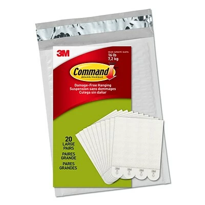 INCLUDES- 20 Pairs of Large, White Command Picture Hanging Strips (40 Strips total); 4 Pairs hold 16 lbs. Maximum frame size of 24 inches x 36 inches