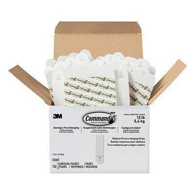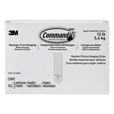 INCLUDES- 132 Pairs of Medium, White Command Picture Hanging Strips (264 Strips total); 4 Pairs hold 12 lbs. Maximum frame size of 18 inches x 24 inches