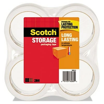 Designed for lasting protection, this tape creates a durable seal with its long-lasting adhesive. This tough tape is clear to the core, UV-resistant, and stays sealed even in extreme temperatures -25° to 160°F. Scotch® Long Lasting Storage Packaging Tape: Withstands extreme conditions and stands guard for lasting protection.
