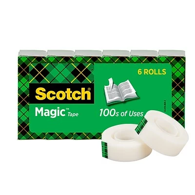 Scotch® Magic™ Tape works as hard as you do to fix all the little imperfections at home, school and the office. The Scotch® Brand’s famous matte finish invisible tape uses unique 3M adhesive technology to bond tightly with paper and disappear without a trace. Write on it with pencil, pen or marker every word is loud and clear. Scotch® Magic™ Tape: Always ready for big ideas and everyday mends.