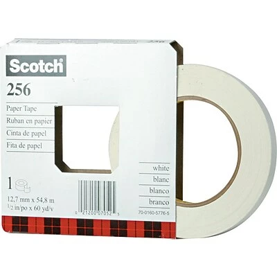 Scotch® Printable Flatback Paper Tape 256 adheres to a variety of papers, films, fabrics and yarns. It is printable with standard flexographic inks common in the printing of packaging materials and is also easily marked with ballpoint pens, felt-tip pens, pencils and rubber stamps, making it ideal for labeling and coding applications.