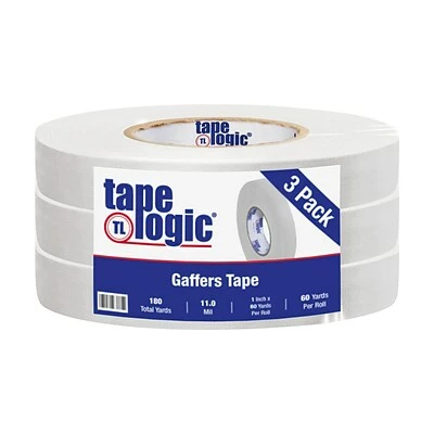 1″ x 60 yds. White (3 Pack) Tape Logic® 11 Mil Gaffers Tape. Great for securing wires to carpet, wood and concrete. Industrial grade tape will not leave a residue. For indoor and outdoor use. Non-reflective.